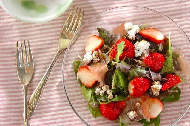 イチゴの酸味と生ハムの塩気がスパークリングワインによく合うおしゃれなサラダレシピです。バルサミコ酢で作ったシンプルドレッシングが美味しさの決めてです。