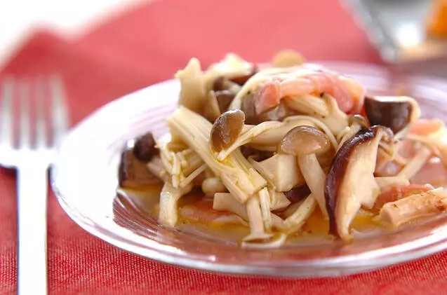 キノコと生ハムのさっぱりマリネ。生ハムで味が決まります。