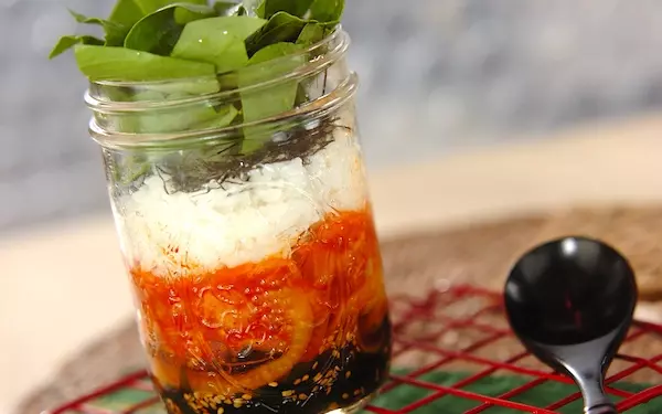 ご飯少なめですが、食べ応えのあるサラダビビンバ。手早く作れるので、急いでいるときのお弁当にもピッタリです。ご飯は雑穀米にすると食感も良く栄養価もアップしますよ。オシャレなジャーサラダなので、おもてなし料理としても活躍してくれそうです。
