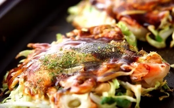 豚肉や魚介のバラエティ豊かな具材の入ったプチお好み焼きです。すりおろし山芋がふんわり軽い生地にしてくれます。卵入りでボリューム満点です。酸味をプラスしたいのなら、マヨネーズを追加でかけてもいいでしょう。