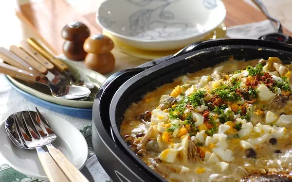 白菜とカキを使ったカレー風味のグラタン。ホットプレートで作るとグラタン皿もオーブンも不要です。ご飯の代わりに、フランスパンを添えてもいいでしょう。食べ進めていくうちに、体の内側からポカポカと温まってきますよ。寒い季節に作りたい一品です。