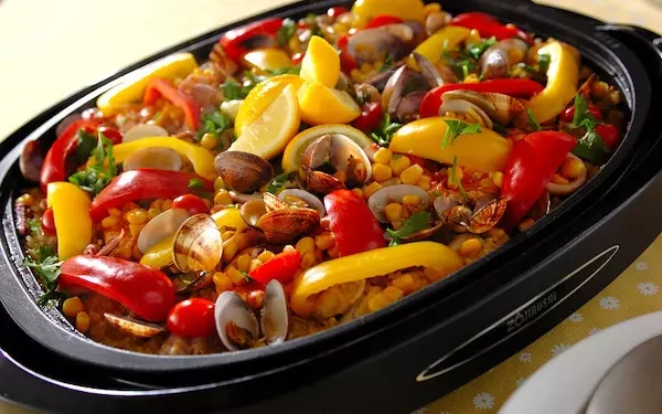 本格的なパエリアもホットプレートで簡単に作れます。野菜やシーフード、鶏肉をたっぷりのせてリッチ感のある一品に。仕上げに、イタリアンパセリを散らし、くし切りにしたレモンを飾りましょう。お好みで、タバスコをかけてくださいね。家族みんなが大満足できる美味しさです。