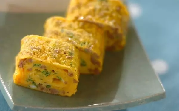 いつもの卵焼きを中華風にアレンジしました。ひき肉入りでボリューム&旨味ともに一気にアップ! 噛み締めるたびに、旨味がジュッと口内にあふれ出す絶品です。お弁当のおかずにも良さそう。