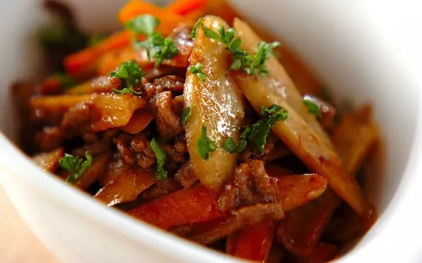 ケチャップとバルサミコ酢を使った洋風きんぴらです。定番のきんぴらを少しアレンジするだけで、一味違った美味しさを堪能できます。仕上げに、パセリを散らしてからどうぞ。