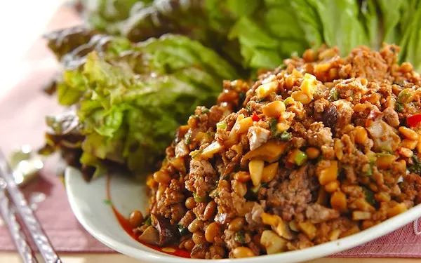 納豆入りでヘルシーかつ栄養たっぷりの一品です。豆板醤のピリッとした辛さがアクセントに。こちらのレシピでは、サニーレタスにひき肉納豆炒めを包んで食べますが、ご飯と具を一緒に包んでも美味です。具を卵で巻いてオムレツ風にアレンジするのもアリ。