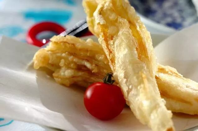 風邪予防にも良いと言われている、白ネギを天ぷらに。おつまみや、温かいうどんにのせて食べたくなりますね。子どもには、マヨネーズを添えると食べやすそうです。