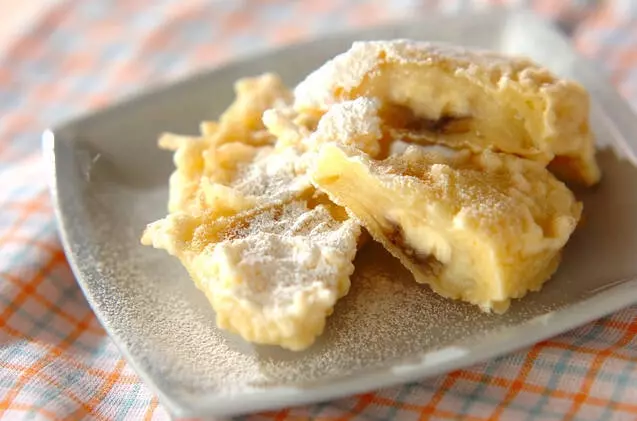 天ぷらにしたバナナは、口に入れた瞬間にとろっとした食感に!ティータイムのお供にもおすすめです。今回は粉砂糖をかけていますが、チョコレートソースをかけると、さらに甘くなって美味しそうですね。おやつにぜひ♪