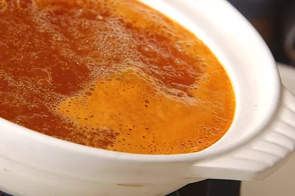 1、鍋にチキンブイヨン、酒、水、キムチ鍋の素を入れ、強火にかける。