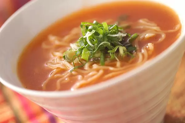 4、最後に中華麺を加え、器に取り分け、刻みネギをのせ、キムチラーメンにしていただきます。
