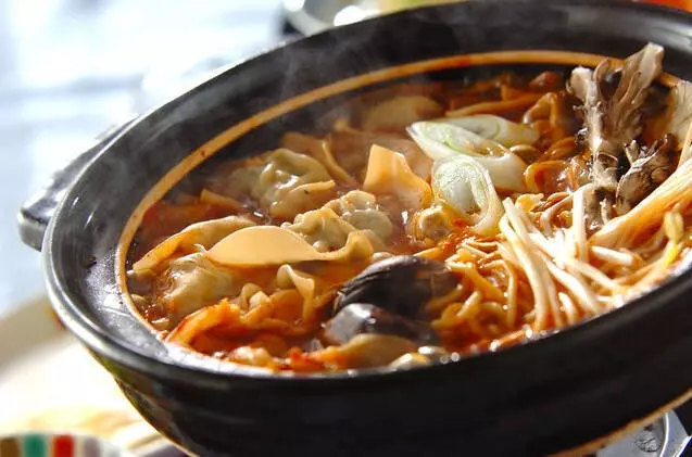 キムチの辛さと牛乳のコクがポイントの埼玉県日高市の名物鍋。10種類以上の具材が入り、野菜もたっぷり食べられます。カルディなどで販売している「韓国サリ麺」やうどんなどお好みの〆を楽しんで下さい。
