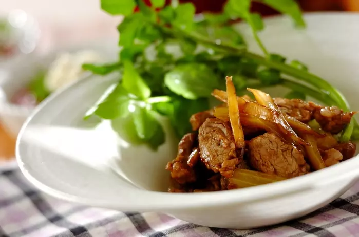 ■豚肉と根菜の甘辛炒め