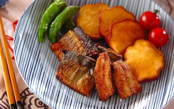 下味に漬けたサンマはよく味がなじんでいて、ご飯がもりもり進む美味しさです。シシトウ、サツマイモを加えると、彩り鮮やかに。ジューシーで子どもから大人まで大満足できますよ。サンマの臭みも感じないため、魚が苦手な人でも食べられるかも!?