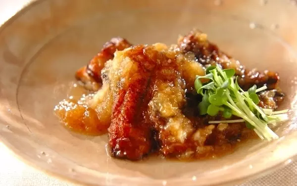 サンマに片栗粉をまぶして揚げ焼きすることで、だしにとろみをつけます。大根おろしとしょうゆであっさりと味わえるのが魅力です。貝割れ菜と一緒に食べると、より爽やかな味わいに。ご飯にのせて丼にするのもアリです。