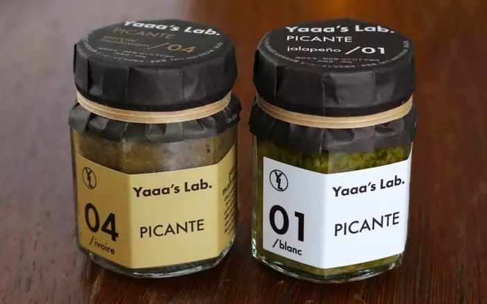 西麻布交差点から少し離れた路地の地下にあるワインバーのシェフが、ワインにあうおつまみを手軽に作れるようにと開発した調味料、Yaaa's Lab. ( ヤーズラボ ) の「PICANTE」シリーズ。そのままテーブルに出して絵になるデザイン、味はNO.1~5まで全部で5種類。