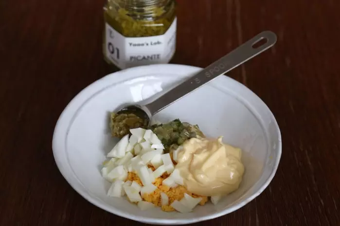 1、ゆで卵を粗みじんにする。
