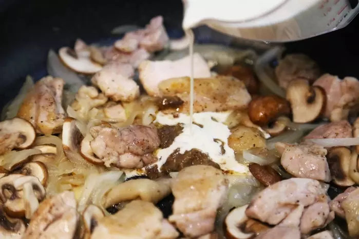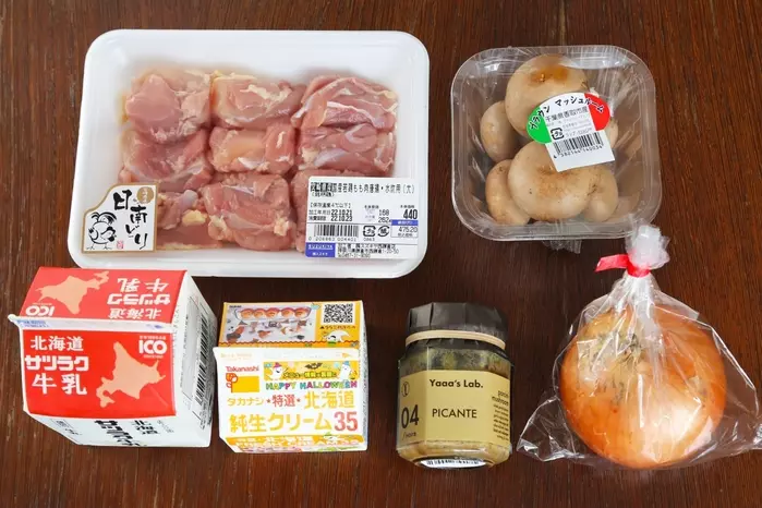 ■PICANTE NO.4(ポルチーニベジソース)で作る「鶏肉とキノコのクリーム煮」