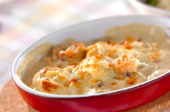 ・ホワイトソースにちょい足し「里芋とキノコのグラタン」