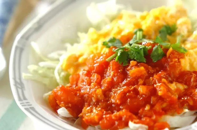 ふわふわに仕上げた卵にピリッと辛い豆板醤が、トマトのソースとよく合います。ご飯と一緒に、無限に食べたくなる味わいですよ。パクチーなど香菜好きの方にもぜひ試してほしいレシピです。卵をふわふわに仕上げるコツも紹介しています♪