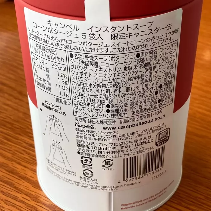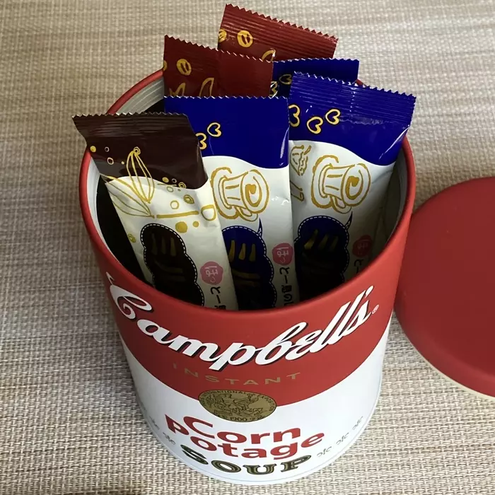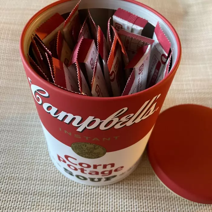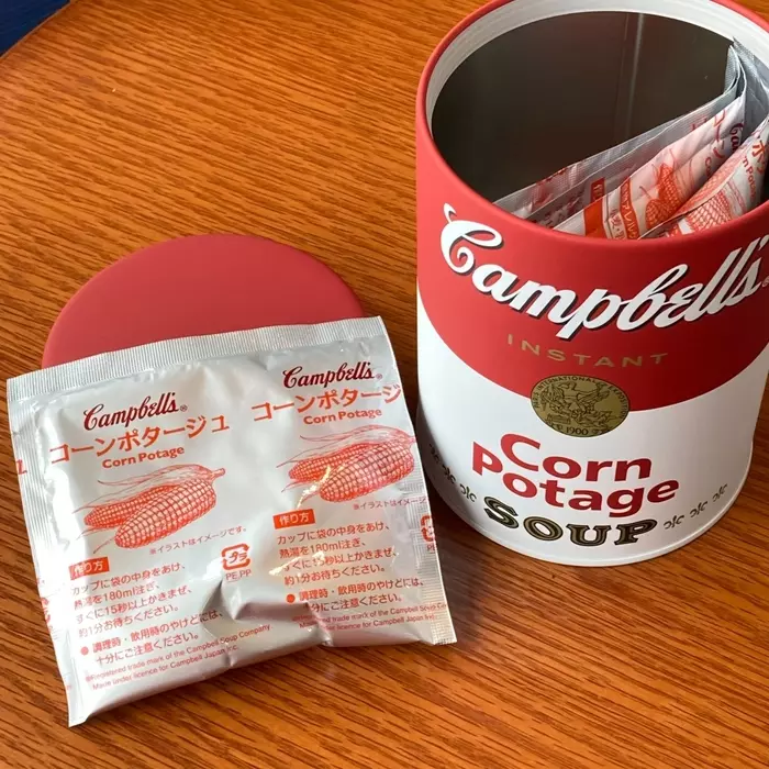 インスタントスープのコーンポタージュが5袋入った、「キャンベルスープ」のキャニスター缶がご好評により再登場!https://t.co/aE6OwBHTKipic.twitter.com/wl48sqivv3
