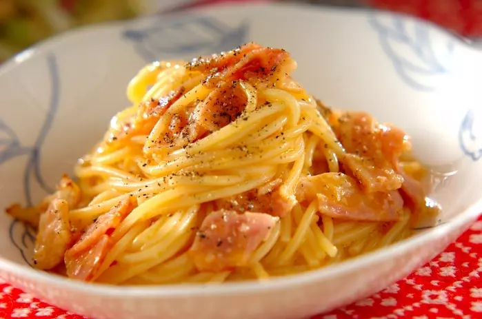 牛乳も生クリームもなくても、失敗なしで簡単に作れるカルボナーラのレシピです。卵とトリュフ塩の相性は抜群です。一振りでレストランで食べるような高級感が味わえます。