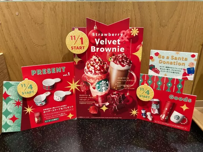 本日(11/1)から #ストロベリーandベルベットブラウニーフラペチーノが新登場