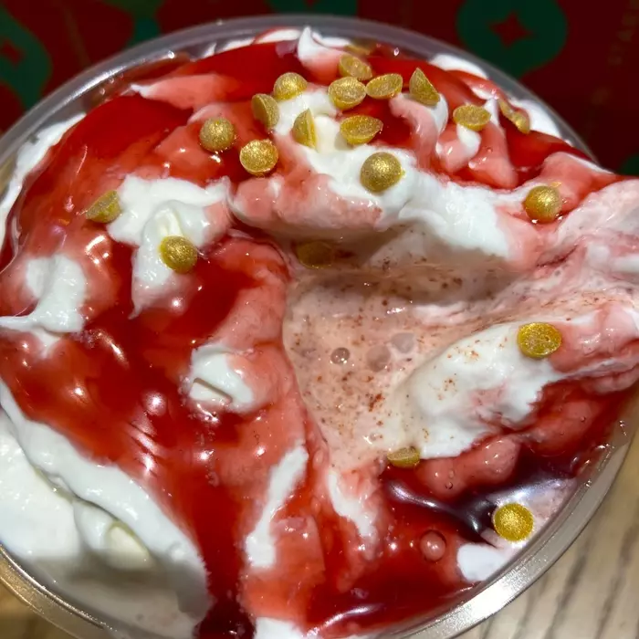 艶めく深紅の色合いときらめくトッピングが、ホリデーの気分をひときわ華やかな贅沢な1杯です。 pic.twitter.com/1EsDvfKgUB