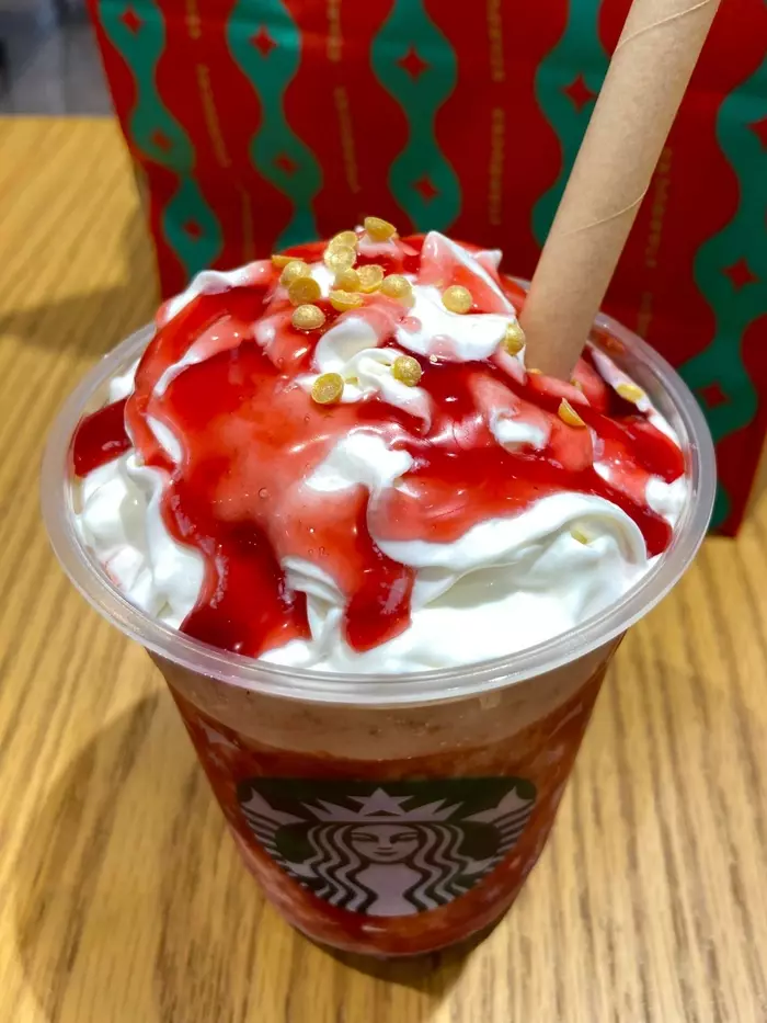 【11/2スタバ新作レポ】「ストロベリー & ベルベット ブラウニー フラペチーノ」はホリデー気分最高潮のキラキラ感