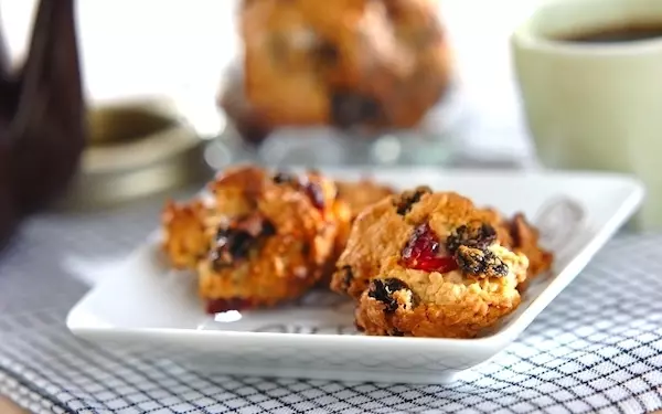 栄養たっぷりのオートミールを使った、ドロップクッキーは大人気! 溶かしバターで作るのであっという間に出来上がります。こちらのレシピでは、レーズン、ドライクランベリー、スライスアーモンドを使っていますが、お好みのドライフルーツに代えても良さそうです。