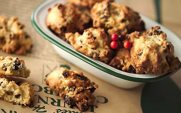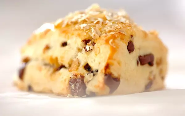 オートミール入りのスペシャルなスコーンがこちら。カレンツとは、小粒で種なしの干しブドウです。手に入らない場合は、レーズンでも代用可能。カレンツ、クルミ、板チョコ、オートミールなどの豊かな風味を楽しめますよ。