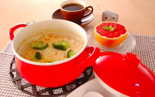 鶏肉と野菜いっぱいのオートミール粥は、食物繊維やビタミン、タンパク質が豊富です。ミルクが入っていて、食べやすく優しい味わい。仕上げにお好みで、食べやすい大きさに切ったブロッコリーをのせましょう。
