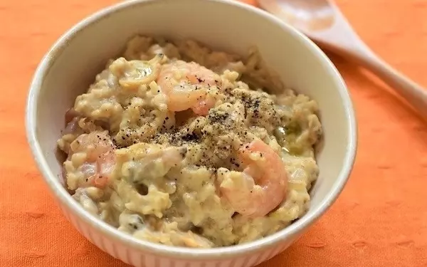 ほんのり甘みがあるオートミールは、牛乳や豆乳で煮るとコクがでて、特別な味つけをしなくても美味しいリゾットに! こちらのレシピでは、アサリとむきエビを使っていますが、具なしで作っても問題ありません。最後に、粗びき黒コショウをかけ、お好みでオリーブ油をかけてから召し上がってくださいね。