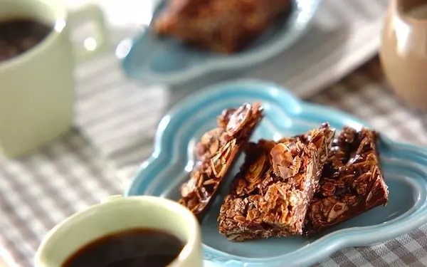 オートミールにチョコレートをまぶして焼き上げた美味しい一品。寒い時期にはホットミルクをかけて食べるのもいいでしょう。お好みで、バナナチップとドライクランベリーを加え、混ぜ合わせてから召し上がれ! 甘さと酸味が絶妙で、何度も味わいたくなりますよ。