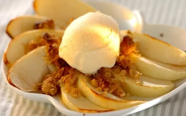 とろける美味しさを堪能できるアップルクランブルです。クランブルは通常バターを使いますが、簡単にできる植物油でアレンジ。熱いうちに取り分け、アイスクリームを添えてから召し上がってくださいね。