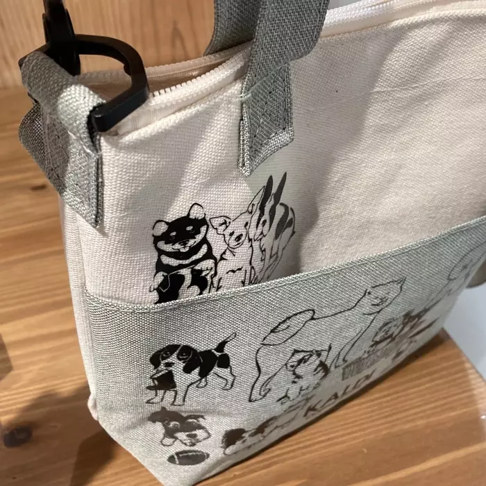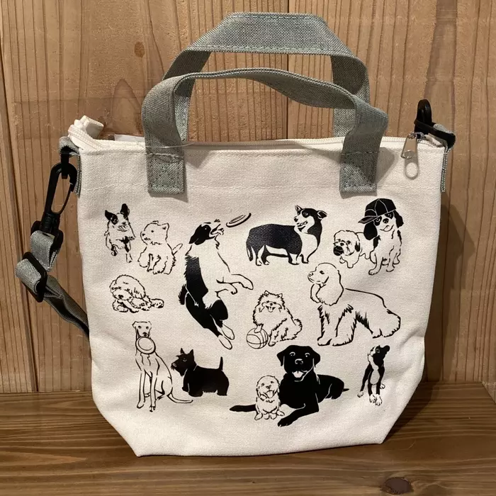 まず、なんといってもバッグの表面と裏面に描かれた色んな犬種のわんちゃんのイラストがカワイイ! きっとあなたのわんちゃんに似た一匹がいるに違いありません!