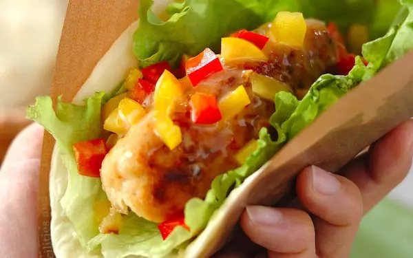 すり身にしたエビと、粗く切ったエビのプリプリとした食感を楽しめる一品です。リーフレタスと一緒にトルティーヤにはさんでいただきましょう。お好みで、刻んだパプリカを散らすのも◎。おうちパーティーにも最適なメニューです。