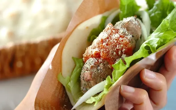 タネにベーコンを入れることで、旨味とジューシーさが格段にアップ! 手作りのトルティーヤとギュッと素材の美味しさが詰まったソーセージの相性は抜群です。子どもから大人までパクパクと食べられますよ。休日のブランチにもオススメです。