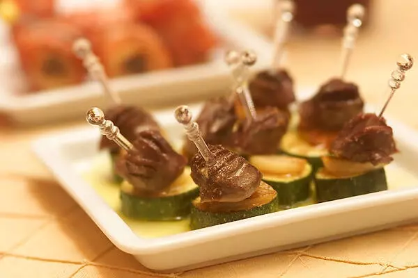 砂肝とズッキーニをフライパンで炒め、楊枝をさせばおしゃれなバル風のピンチョスに。パプリカパウダーをかけると本格的なバル風に仕上がります。おもてなしの前菜やおつまみ、お弁当に良いですね。