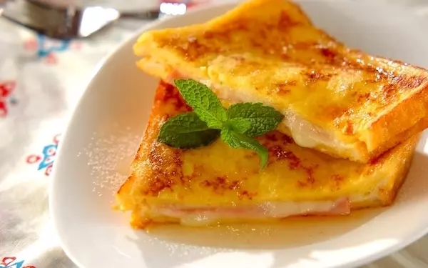 カナダ生まれのサンドイッチ「モンティクリスト」は、フレンチトーストとクロックムッシュの良いところをギュッと詰めたトースト。軽食やおやつとしても大活躍してくれますよ。仕上げに、ハチミツをかけ、粉糖を振り、お好みでミントの葉を添えてくださいね。チーズの塩気とハチミツの甘さが見事にマッチ。一口味わうとやみつきに!