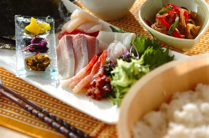 マグロやサーモンなど子どもも大人も大好きな定番の刺身の他にも、ブリ、エビ、カニ、ヒラメ、イカにタコなど刺身の盛り合わせを並べるだけでパーティー気分。
