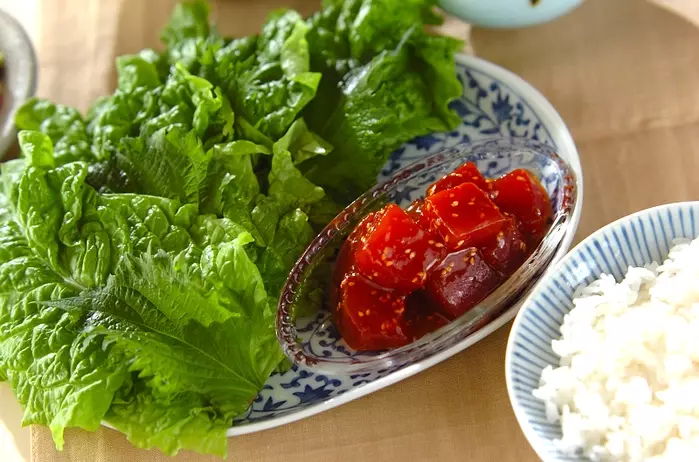 人が増えるとお刺身をテーブルに出して置く時間が長くなります。そんな時はあらかじめ漬けにしておくと乾燥させず食べられます。漬けにすることで醤油いらずで他の具材とも合わせやすく。マグロ以外に、鰹やブリなど「漬け」に向いています。