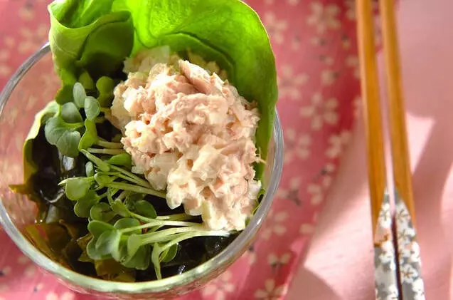 手巻き寿司の副菜でも良い「ポテトサラダ」。実は酢飯と相性がよいのです。焼きのりだけでなくサンチュに巻いて食べるのがオススメです。