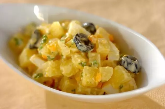 コロコロジャガイモとゆで卵で作るシンプルなポテトサラダ。ジャガイモと卵に余裕があればたくさん作って翌日パンに挟んでサンドイッチにしても良いですね。