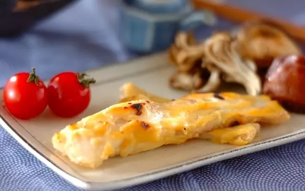 しっかり味のタラの西京焼きをけんちん汁の主菜として味わうのもオススメです。焼いたシイタケ、マイタケのほか、ミニトマトを添えると彩り鮮やかに。漬ける時間を省けば、15分で作れるのも助かりますね。