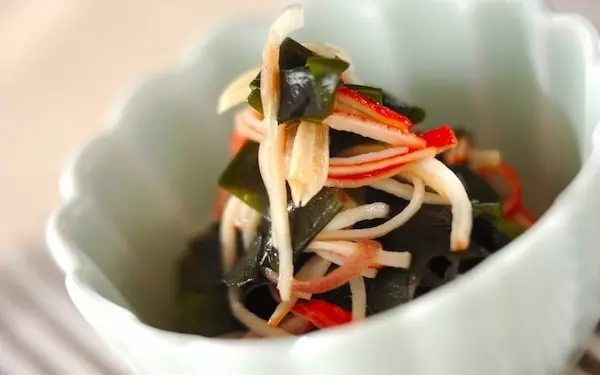 さっぱりと味わえる酢の物もけんちん汁と合います。こちらのレシピは、ゆずこしょうが効いているのが特徴です。ミョウガがない場合は、貝割れ菜をトッピングしても◎。5分でパパッと作れて便利です。