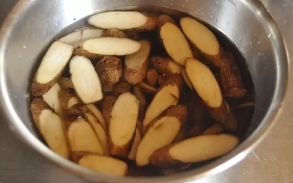 ・大根とニンジンは皮をむき、薄い半月またはイチョウ切りにする。大根はお米のとぎ汁で柔らかくゆでる。