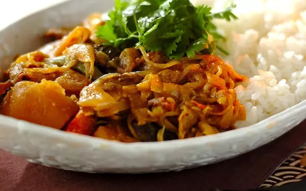 残った肉じゃがを使って作れる和風カレーです。意外かもしれませんが、けんちん汁とカレーは相性抜群。一度味わうとハマってしまいますよ。こちらのレシピでは、最後に香菜をのせてますが、省いても問題ありません。