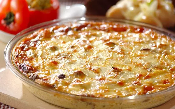 シメジ、マイタケ、マッシュルームのほか、玉ネギとツナが入った、とってもクリーミーなオーブン焼きです。表面においしそうな焼き色がつくまで焼き、すくい分けて召し上がってくださいね。クリスマスパーティーにオススメな一品です。