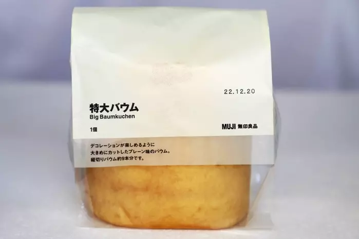 ケーキを焼いたことがない筆者が、ピニャータケーキが簡単に作れると知ったのはSNSでも話題の無印良品の「特大バウム」。筒状のバウムクーヘンの真ん中の空洞に好きなお菓子を詰め込むだけ!無印良品「特大バウム」999円(税込)