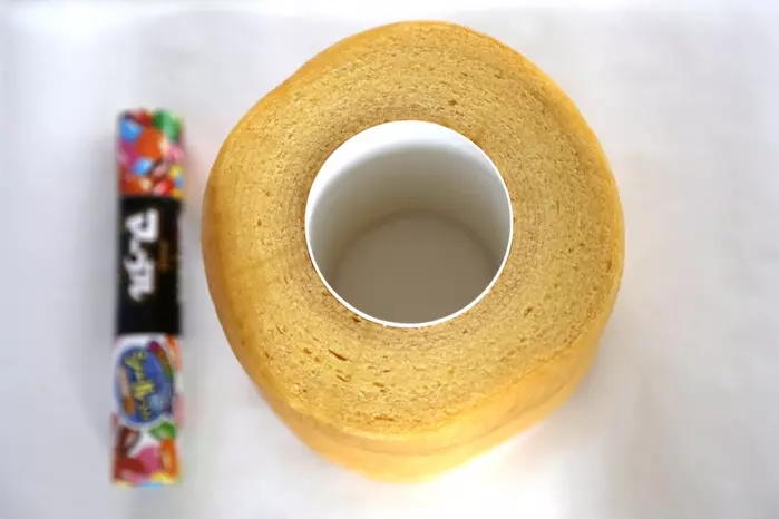 特大バウムの真ん中の筒を抜きます。直径約14センチ、高さは13センチ。