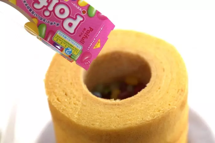 ご覧の通り空洞の中にお菓子をどんどん入れていきます。